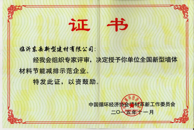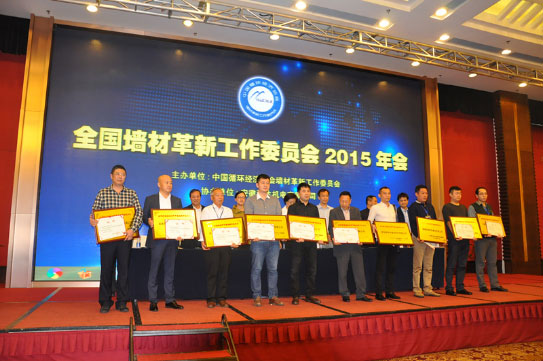 11月12日~13日,全國墻材革新工作委員會(huì )在廣東佛山組織召開(kāi)了2015年年會(huì )。會(huì )上、臨沂東岳新型建材有限公司等第一批145家企業(yè)受到全國墻材革新工作委員會(huì )的通報表彰,被授予全國新型墻體材料節能減排示范企業(yè),東岳建材作為示范企業(yè)代表進(jìn)行發(fā)言,交流了經(jīng)驗。